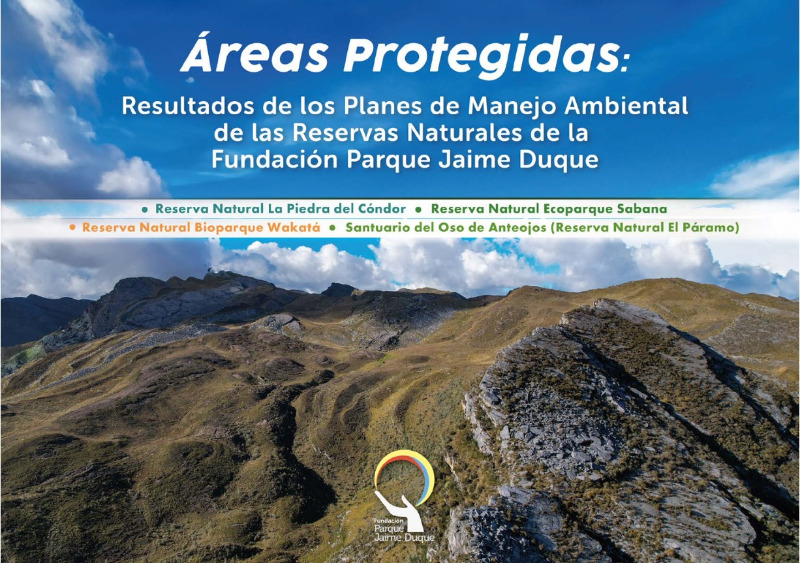 En este documento se presentan los resultados de la implementación de los planes de manejo ambiental de las reservas naturales de la sociedad civil de la Fundación Parque Jaime Duque en Tocancipá y en Santander y de la reserva natural El Páramo donde opera el Centro de Atención, Valoración y Rehabilitación Santuario del Oso de Anteojos, administrado por la Fundación. Se recopilan los resultados de los planes de acción y seguimiento de cada reserva con temporalidades desde 2020 hasta junio de 2024. La presentación de estos resultados permite evaluar y tomar medidas de manejo para la actualización de los planes de manejo de las tres reservas y del Santuario. Corresponde a investigación biológica y resultados del componente de tejido social y de educación ambiental útil para otras personas que trabajen en los territorios donde se encuentran las reservas, para quienes formulan planes de manejo ambiental o como línea base para nuevos estudios ambientales e investigaciones.